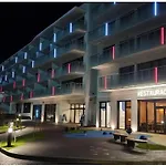 Kolobrzeg Polanki Aqua Apartamenty Premium - Bezplatny Parking Baseny Sauny Bawialnia Silownia, som ligger i Kołobrzeg 3 km från Mariakyrkan, ståtar med hamam, bastu och inomhuspool. Cirka 10 minuters bilfärd från den 45 m² stora lägenheten hittar du Kołobrzeg Pier.
